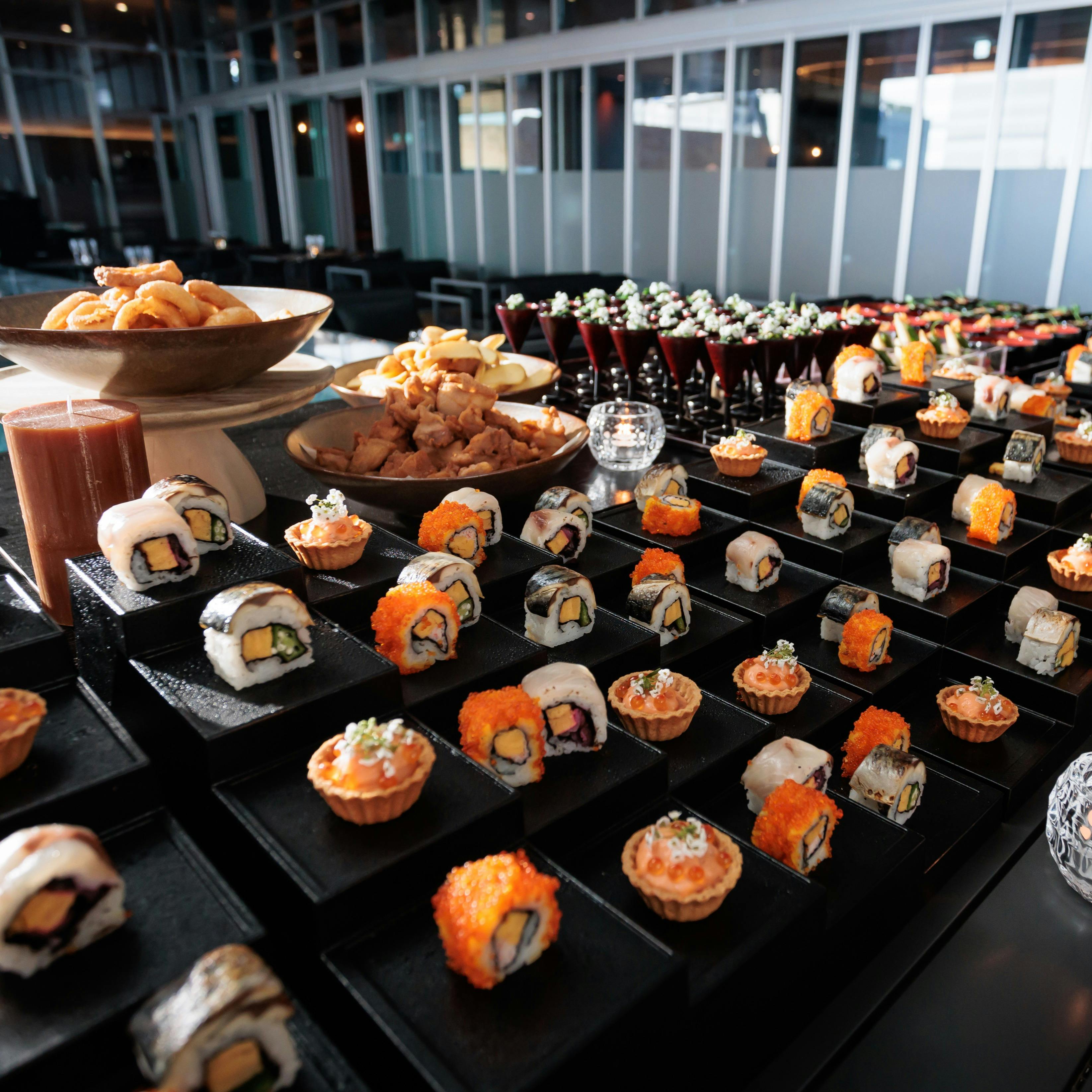 新宿の中心、歌舞伎町の新名所「ゴジラヘッド」を間近に望むWATER TERRACEは、都会の喧騒を忘れさせる半屋外の開放的な空間です。着席40名、立食100名まで対応可能な貸切専用スペースは、パーティーや懇親会、歓送迎会など多彩なシーンに最適。ビュッフェスタイルの料理は、彩り豊かなロール寿司やサーモンムースタルトなど、シェフが心を込めてご提供。フリードリンク付きのプランで、ゲストとの会話も弾みます。新宿駅から徒歩圏内というアクセスの良さも魅力。大人のための特別なパーティーをWATER TERRACEでお過ごしください。