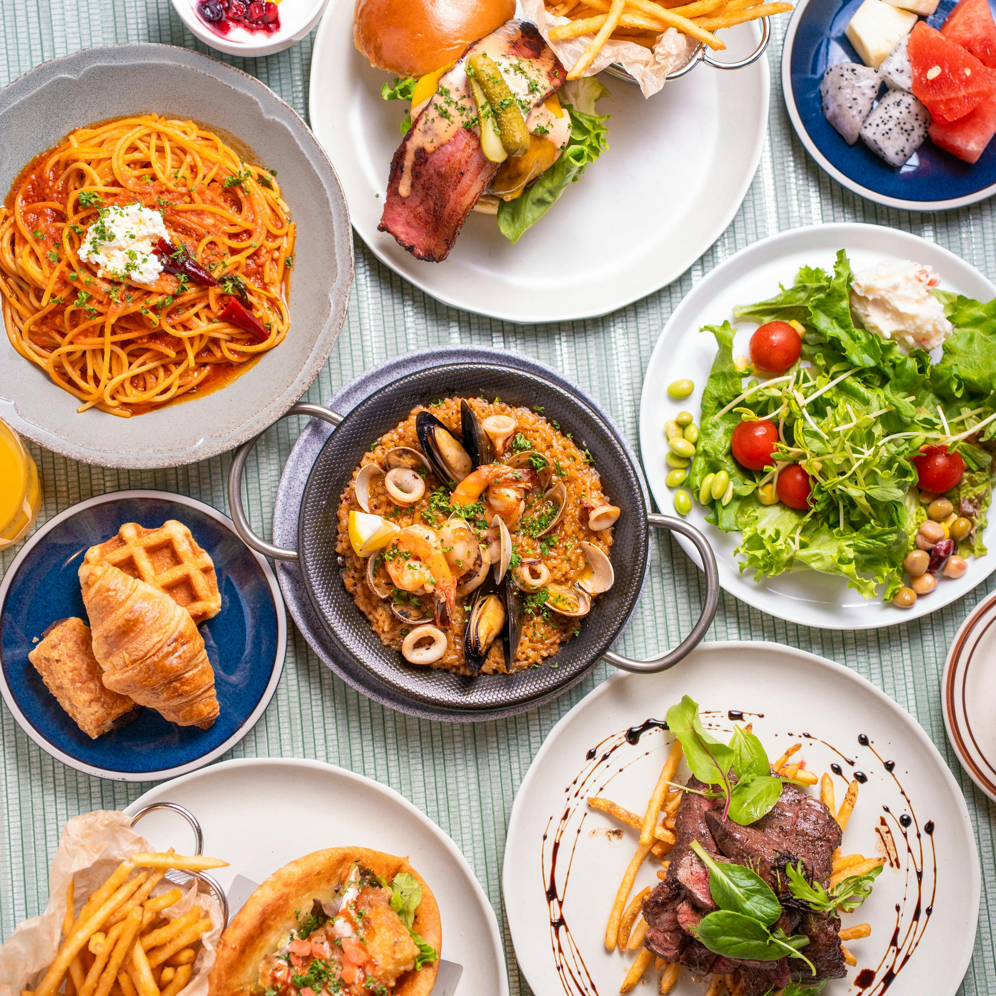 目前に広がる海を愛でながら、ゆったりとお召し上がりいただけるラソールランチ。 7月18日よりランチメインメニューをさらに充実させていただきます! ご希望のメイン料理とともに、お好きなだけブッフェメニューをお楽しみください。 料金はお選びのメイン料理で変わります。 【選べるメイン料理】 ・ハーブ香るアラビアータ(バケット付き)\2,300 ・海老のトマトクリームパスタ(バケット付き) \2,700 ・M地中海ラソールシーフードパエリア \2,400 ・もち粉チキンピザサンド(ポテト付き) \2,500 ・厚切りベーコンのラソールチーズハンバーガー(ポテト付き) \2,800 ・サクサクフィッシュと海老フリッターのハンバーガー(ポテト付き) \2,800 ・レモンとチーズ香るチキンカツレツ サルサメヒカーナ \2,800 ・スパイスマリネのハラミステーキ(パン or ライス) \3,000 ■ブッフェメニュー ・新鮮野菜とこだわりドレッシングのサラダ ・特製スープ ・日替わりブレッド ・パティシエの作るスイーツ ・ソフトドリンク ※表示の金額はメインメニュー・ブッフェメニュー・消費税を含んだ価格です。