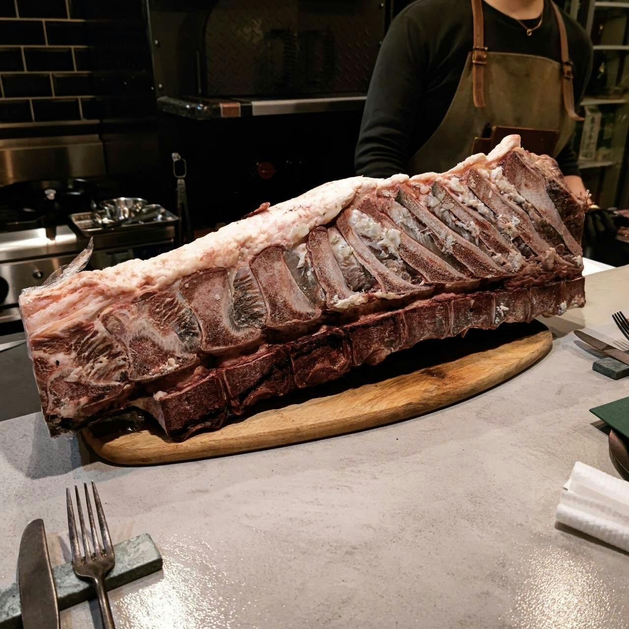 Kingsmanでは、最短90日、最長140日にも及ぶ長期ドライエイジングを施した熟成肉をご提供しています。一般的な熟成期間を遥かに超えたその肉は、ナッツのような芳ばしい香りと、深く濃厚な旨味を備えています。温度や湿度を緻密に管理し、日々状態を見極めながら丁寧に熟成。時間が創り出す唯一無二の味わいを、ぜひご体感ください。
