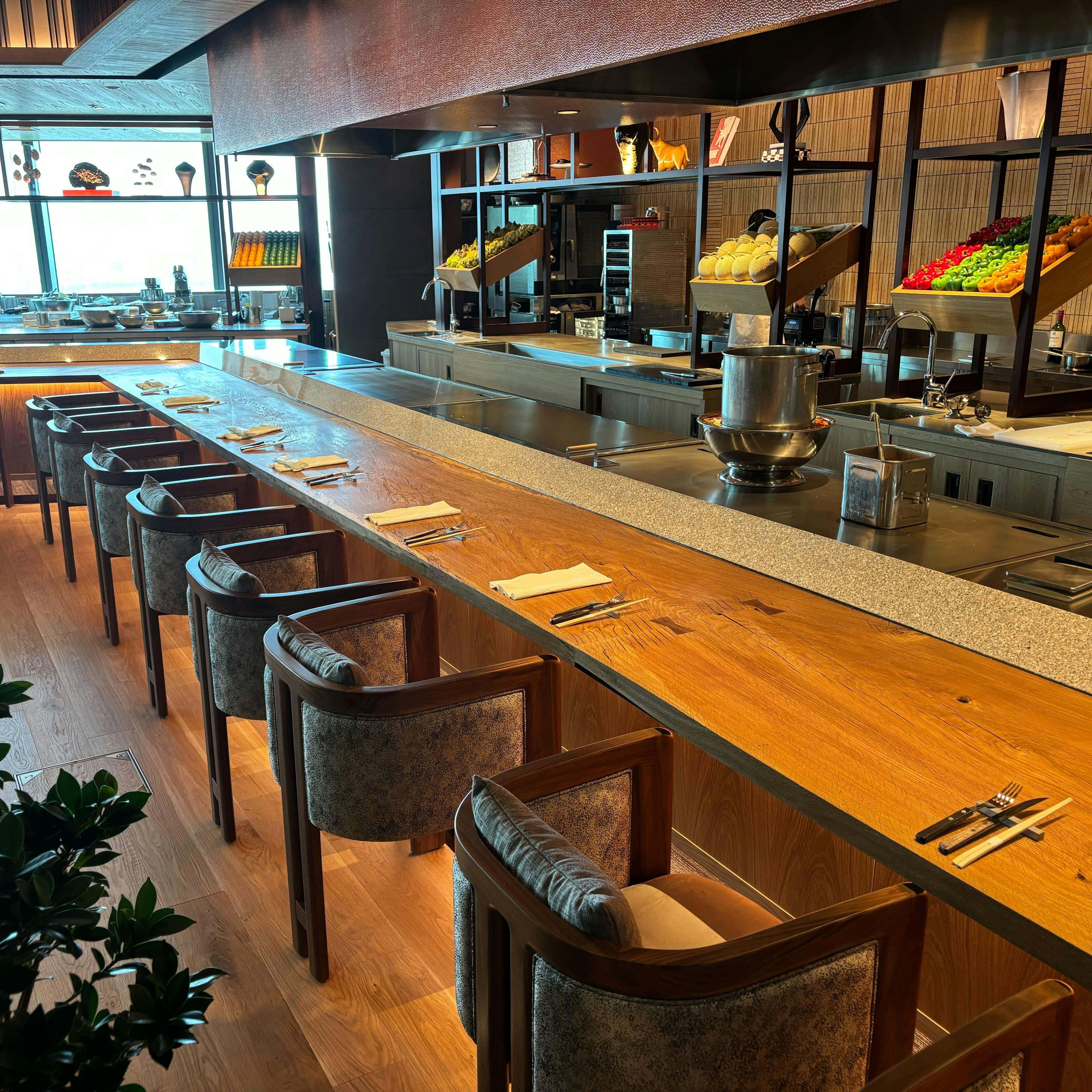 高輪ゲートウェイから東京の街並みを一望できる高層階で、上質な鉄板焼きをご堪能いただけます。料理人が目の前で食材を焼き上げるライブ感は、まさに五感を刺激する特別な体験。国産牛や、新鮮な魚介、全国の旬野菜など、こだわりの食材を一番美味しい瞬間にお届けします。大切な方との記念日や誕生日、接待にも最適な個室も完備。心に残る贅沢な時間をお過ごしください。
