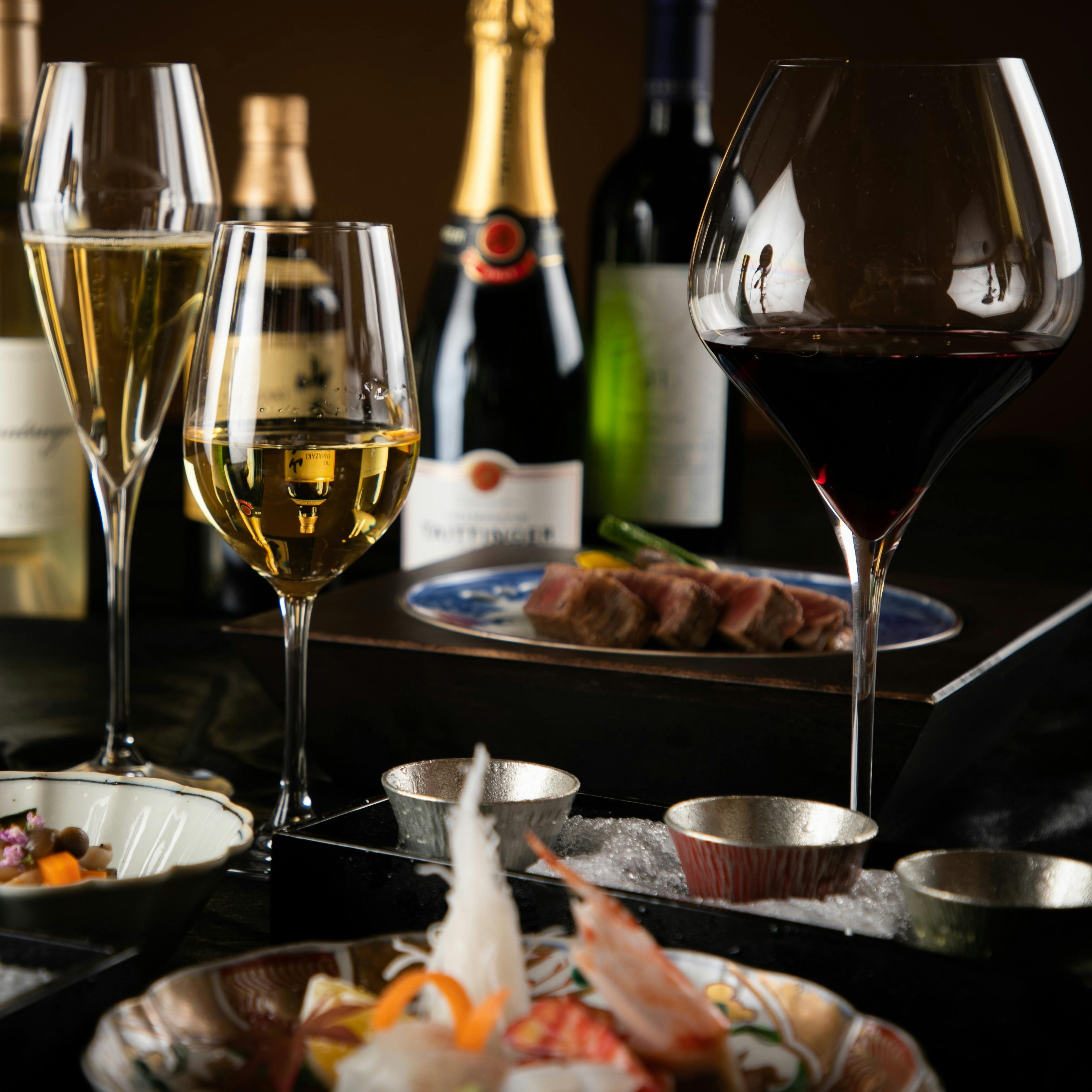 フランスを中心に常時60本のワインが並ぶワインセラー。地元産のワインをはじめ産地も豊富に取り揃えており、夜の楽しみがまた広がります。
