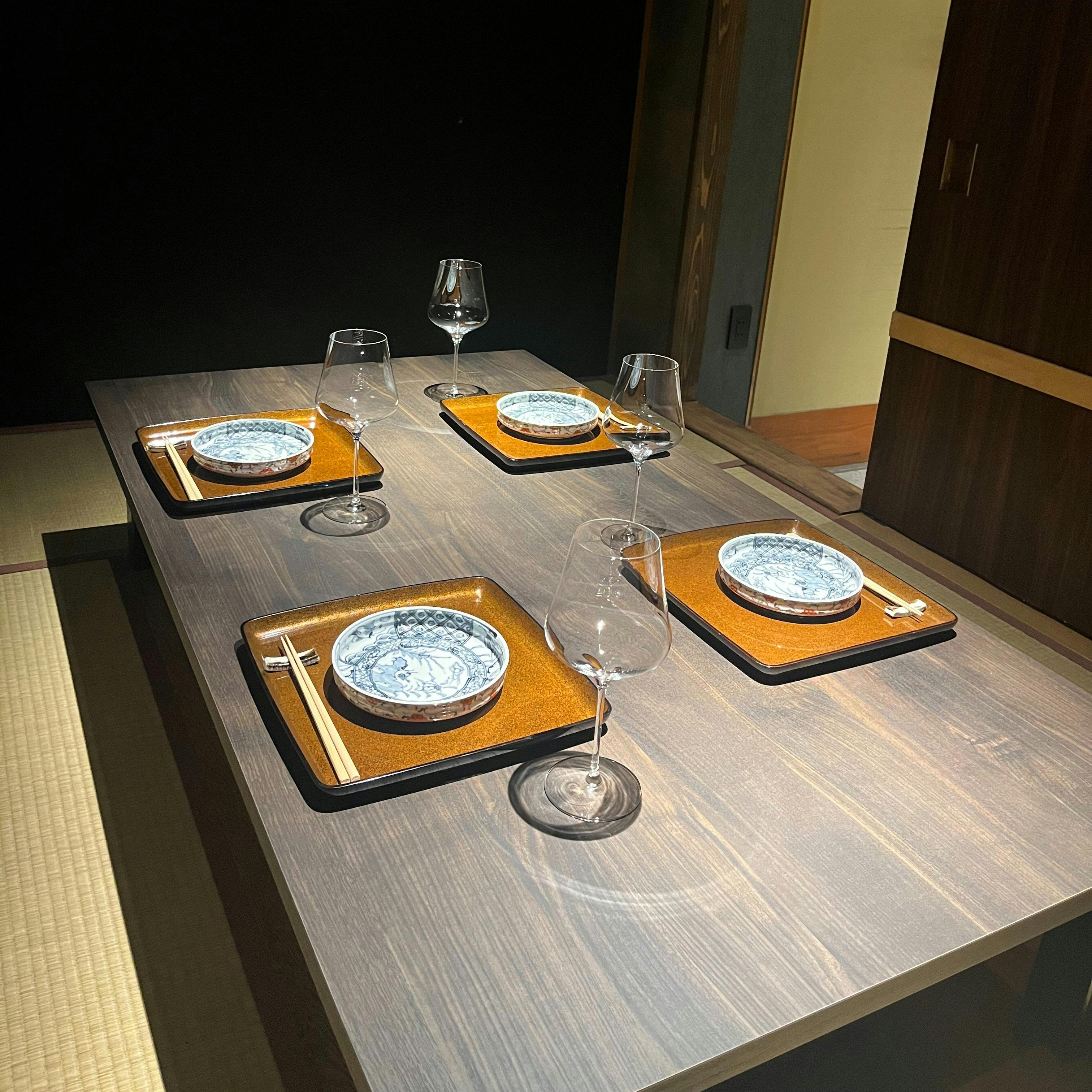 木の温もりを基調とした落ち着いた空間。 カウンター越しには前田氏の研ぎ澄まされた所作が映え、テーブル席には柔らかな灯りが静かに揺れます。 過度な 装飾はなく、料理の香りや音までも味わえる、心地よい余白を大切にした内観です。