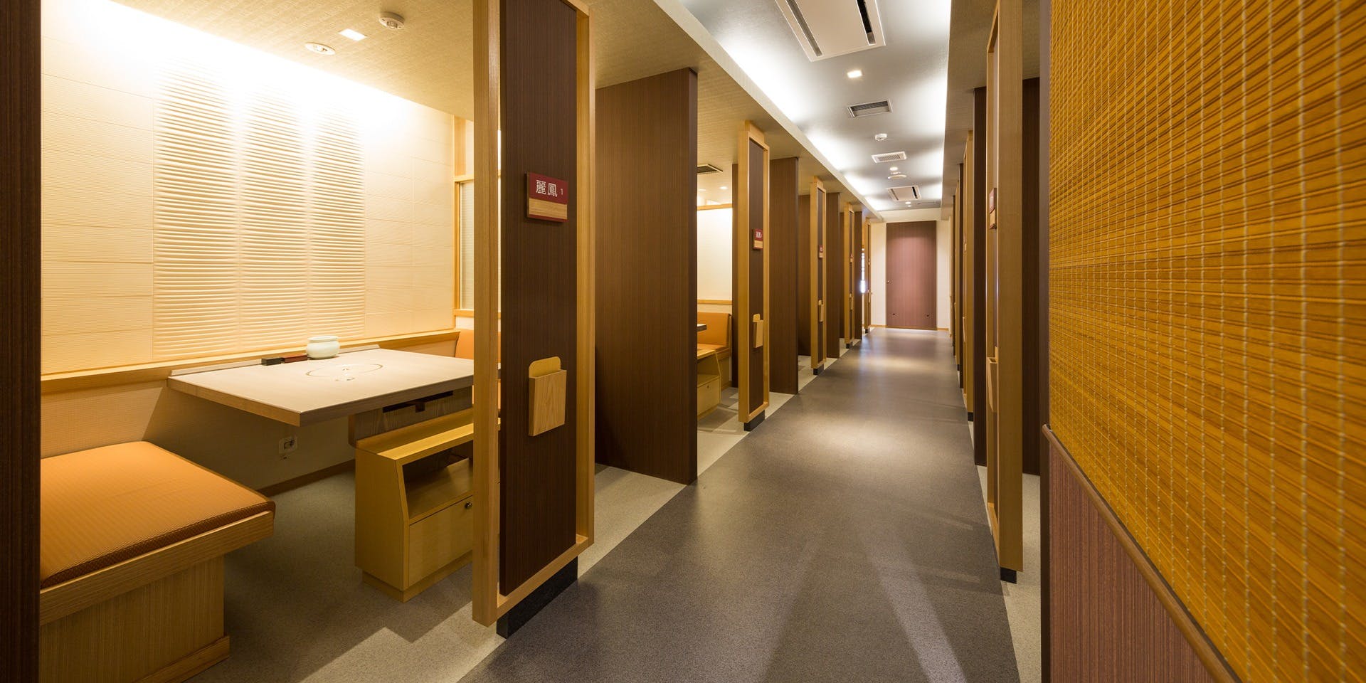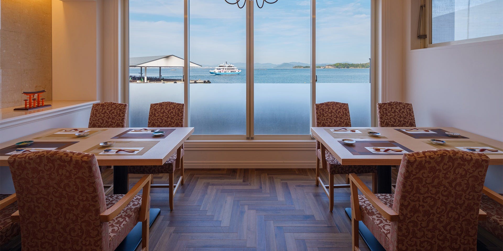 宮島・厳島神社をイメージした店内で、匠の技が光る四季折々のお料理を味わう、くつろぎの時間をお過ごしください。