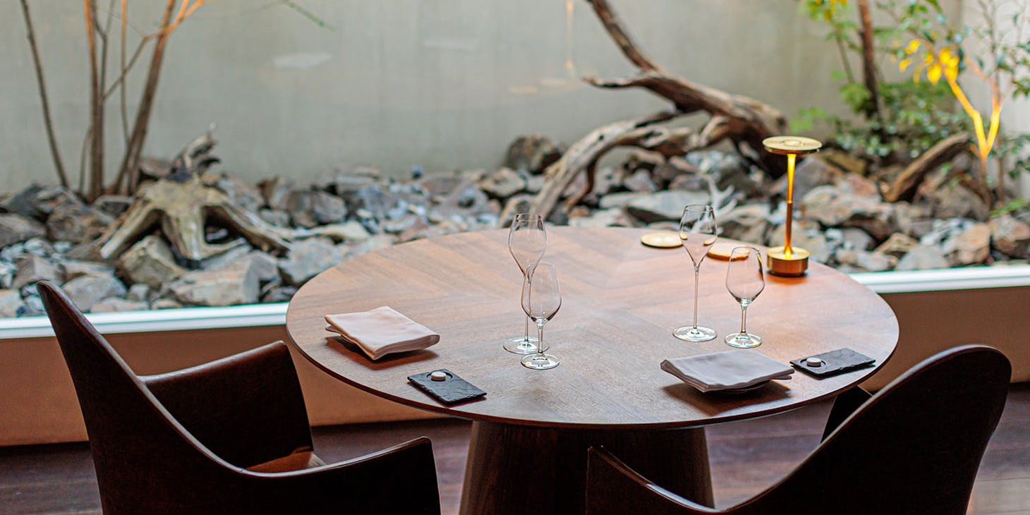 神戸を代表する独創的なモダンフレンチとソムリエがセレクトするペアリングを… モダンな空間で上質な食事を堪能していただけます。