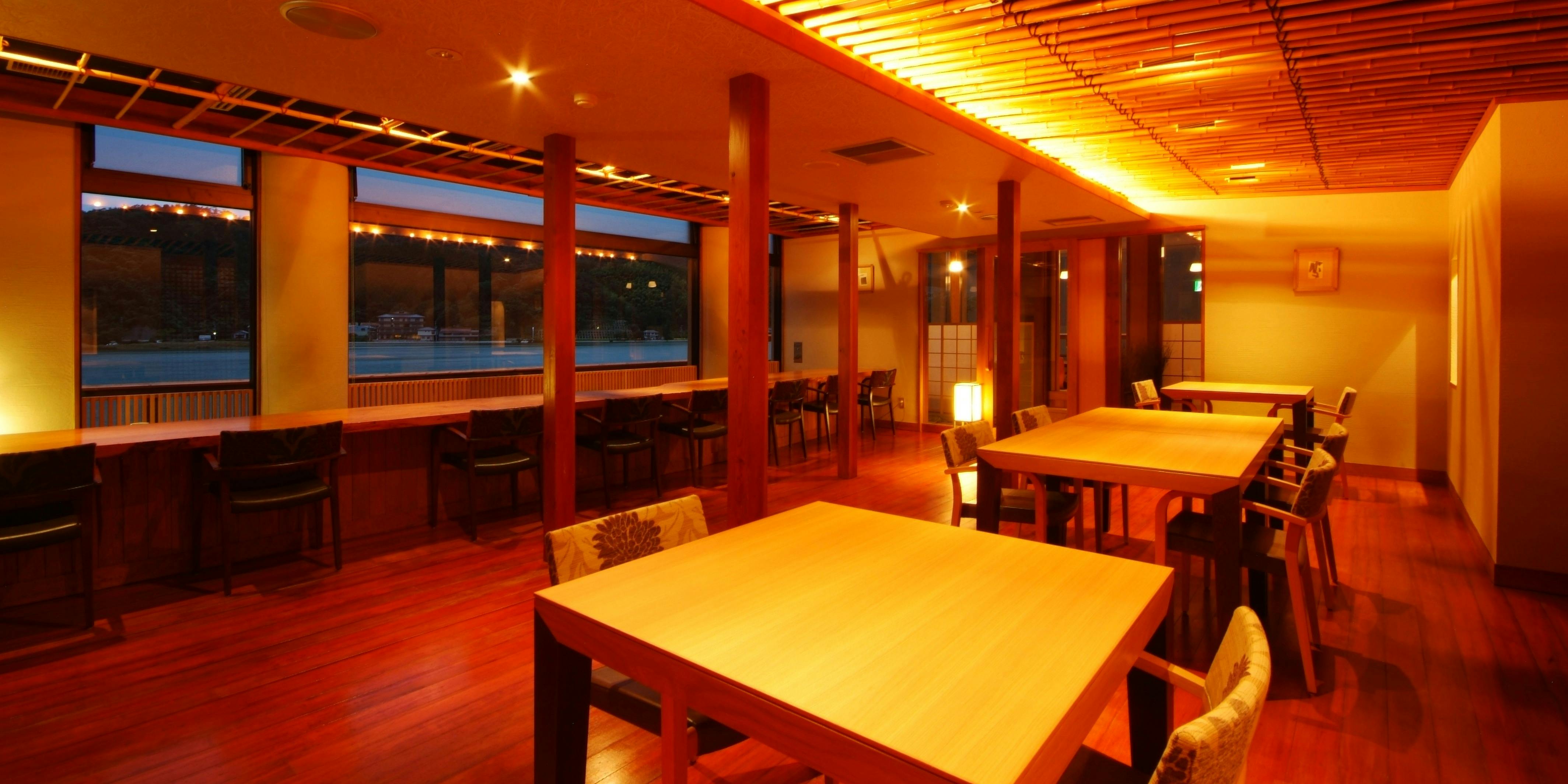 円山川のゆったりとした流れと対岸の小高い山の稜線が時を忘れ、心を和ませてくれる癒しの空間でごゆっくり旬の食をご堪能ください。