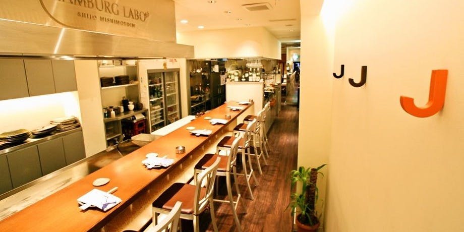白を基調とした洗練された空間で鉄板で仕上げる新感覚のハンバーグとワインに合う一品をお愉しみ下さい。