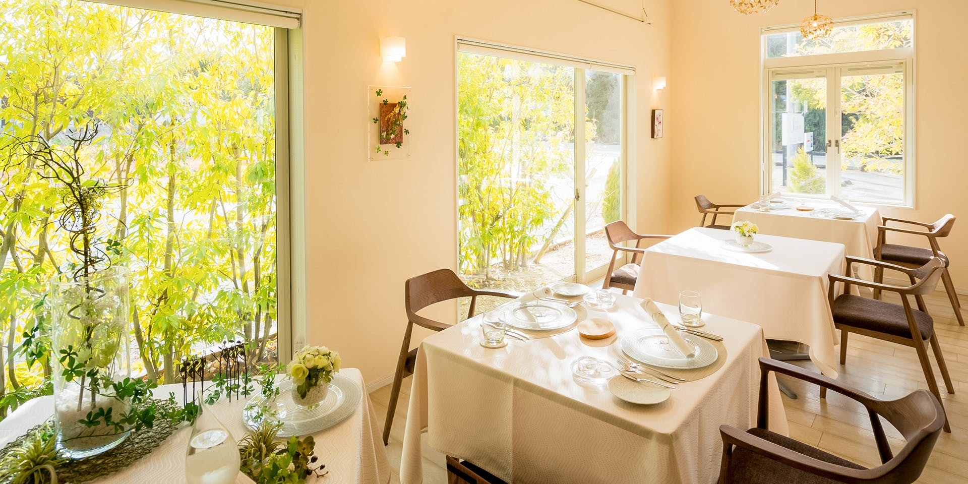 歴史と伝統が織りなす場所に佇むレストラン。 庭園に囲まれた1階席、四日市港を望む2階席にて、三重の旬の恵を和×仏料理でお愉しみ下さい。