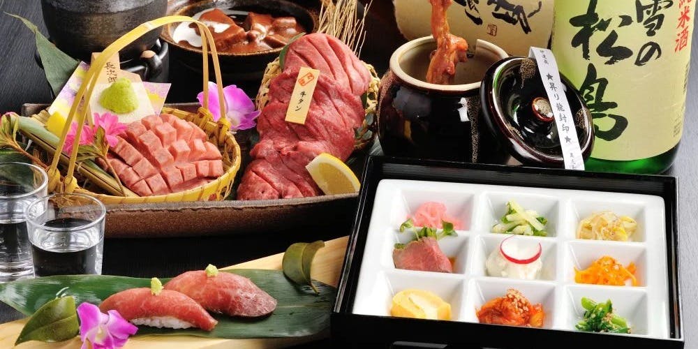 落ち着いた個室で味わう極上仙台牛。名物牛タンや三種食べ比べが特別な時間を彩ります。