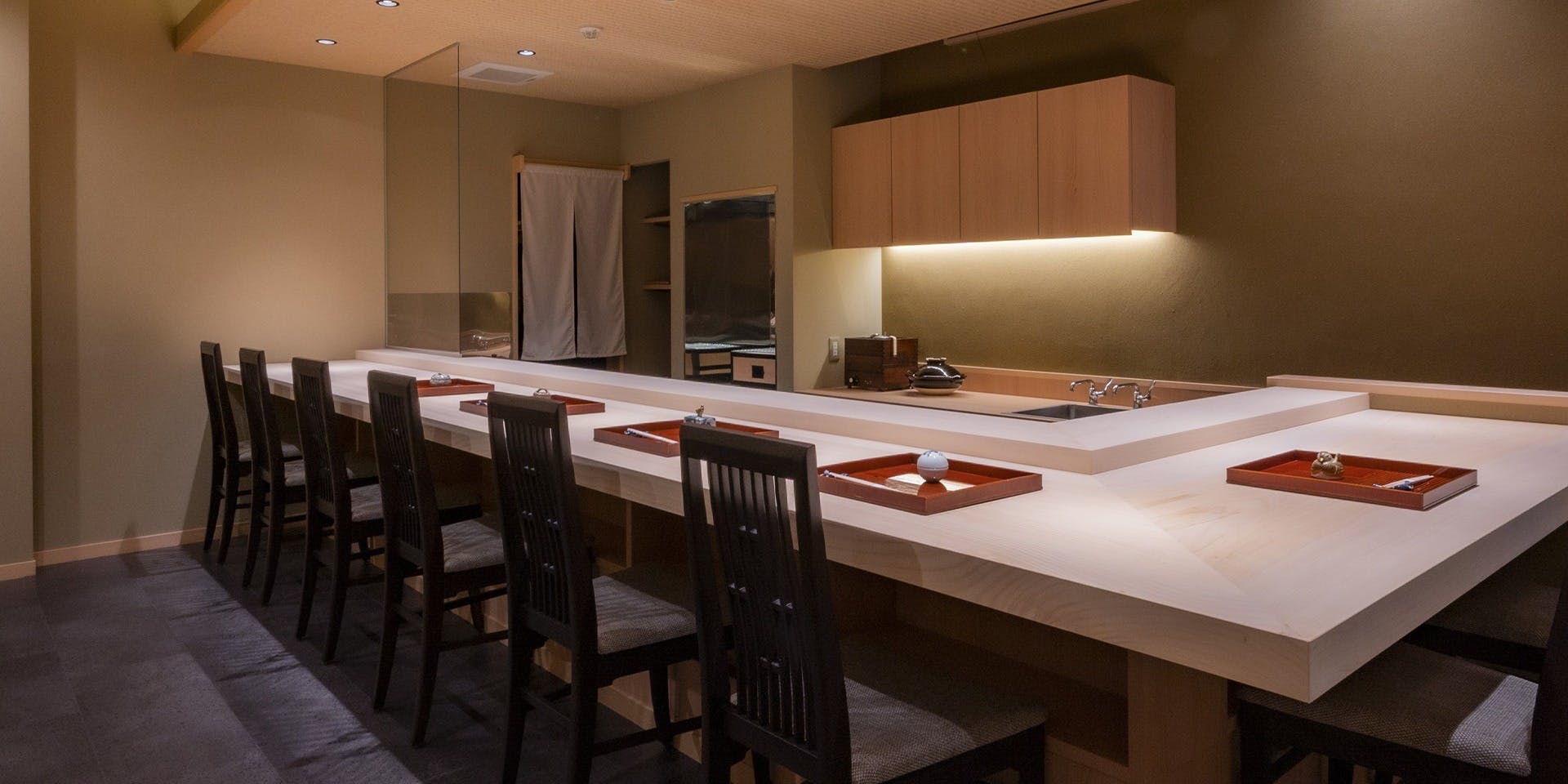 良質な和牛や日本海の新鮮な魚介など、選びぬかれた食材をお客様の前で焼き上げます。落ち着いたカウンター席は記念日やご接待にもおすすめです。