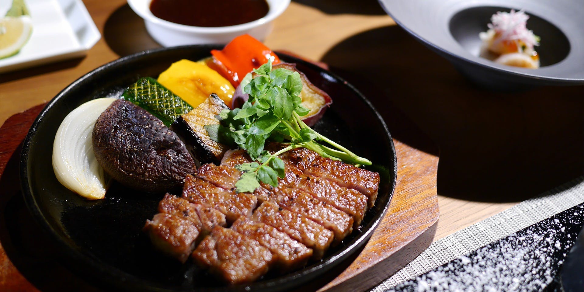 ホテル最上階の鉄板焼。おおいた和牛をはじめ、大分のシェフ厳選の食材を目の前で焼き上げる鉄板焼ならではの醍醐味をお楽しみください。