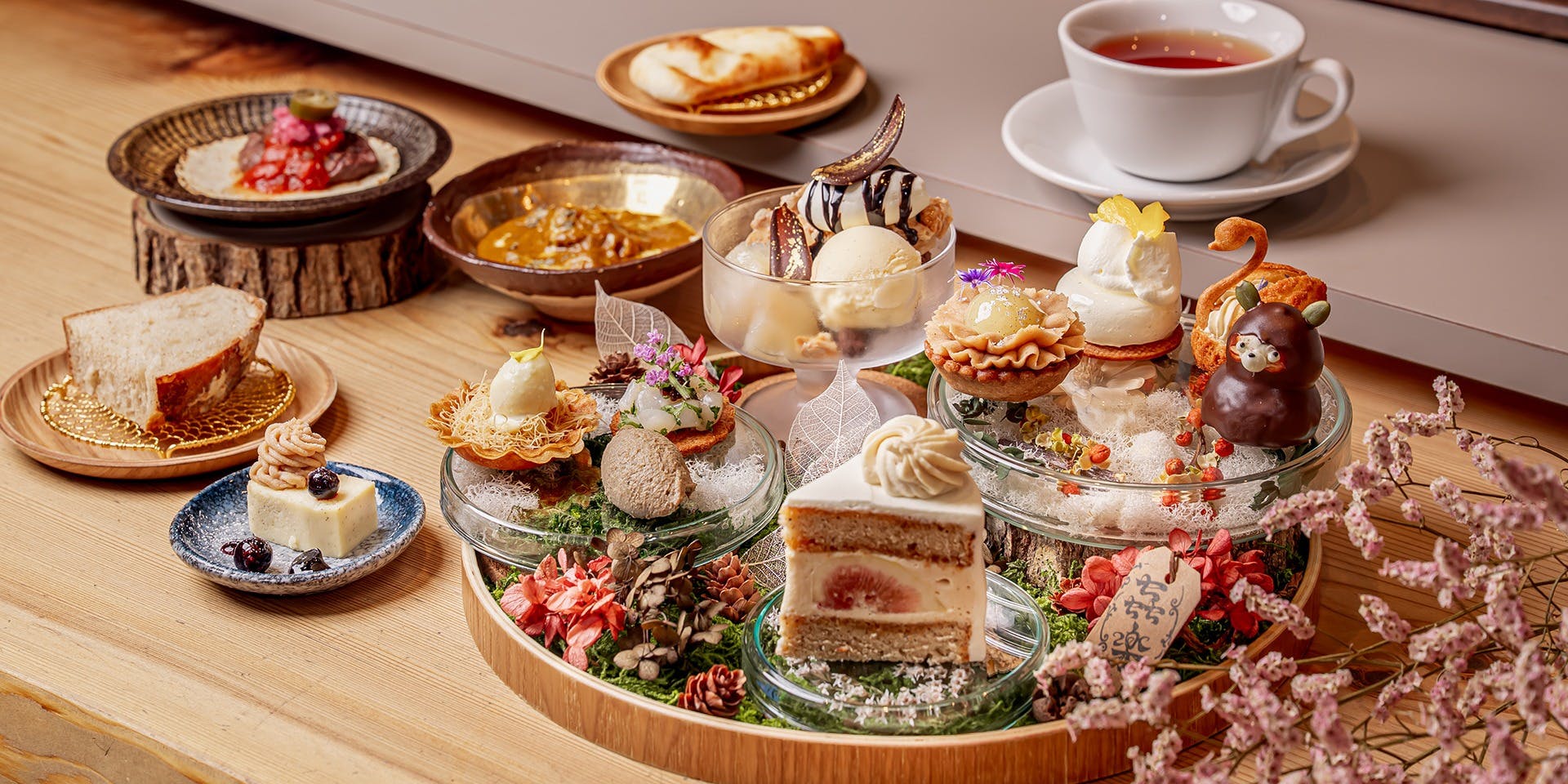 出会いのときを彩るくつろぎの空間、アトリウムロビーでアフタヌーンティーをはじめ、季節にあわせて登場するデザートの数々をお楽しみください。