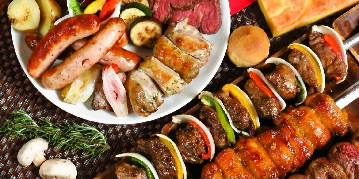 ブラジル直輸入の専用マシーンで作る、絶妙な焼き加減のシュラスコをご提供致します。20種のシュラスコ食べ放題を心いくまでお愉しみ下さい。