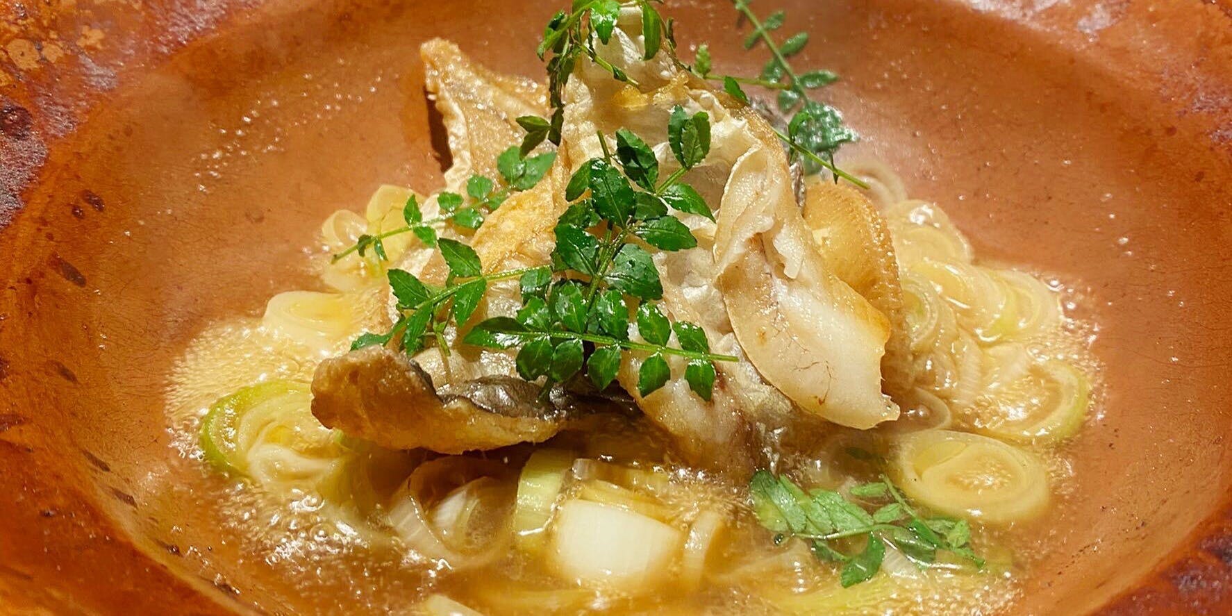 旬の魚を活魚や熟成と使い分け、五法で仕上げる魚料理や季節野菜、おくどさんで炊き上げる土鍋ご飯など素朴な料理をご堪能ください。