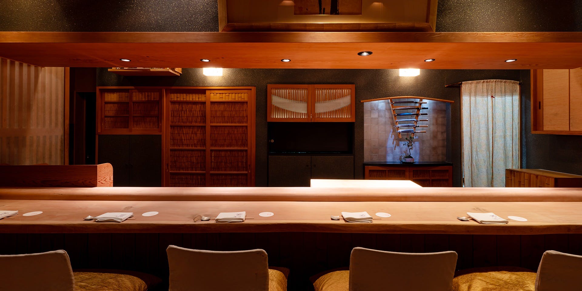 パサージュ鷹匠の1階にひっそりと佇むカウンターのみの小さな日本料理店