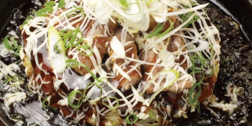 鉄板で仕上げるヤミツキホルモンと関西風お好み焼きで心もお腹も満たされる