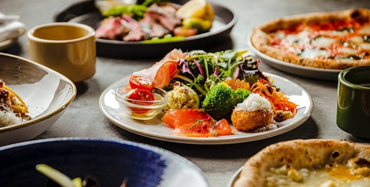 【平日ランチ】飲み放題2Hとデザート4種盛合わせ付き!前菜ビュッフェにパスタorピザをお選びください。