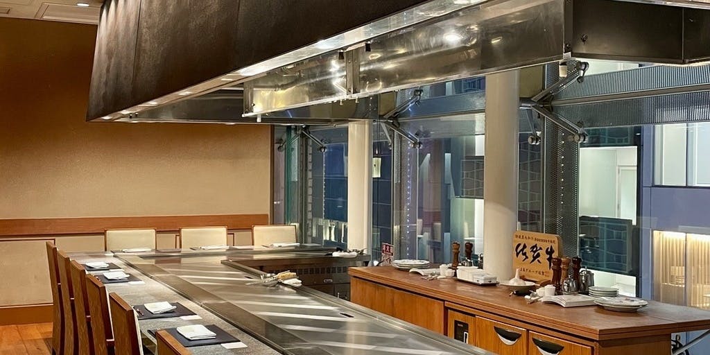 こだわりの神戸牛と黒毛和牛の炭火焼ステーキや旬の海鮮の鉄板焼きなど、シェフの技を目の前で味わえる鉄板焼レストラン