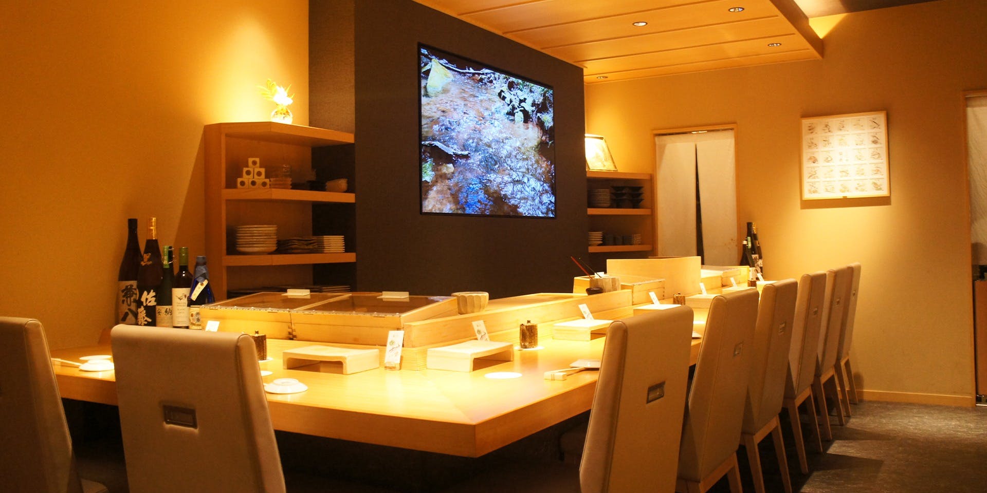 凛とした風情漂う空間で、匠の技による珠玉の寿司や逸品を美味しいお酒とともにお愉しみいただけます。