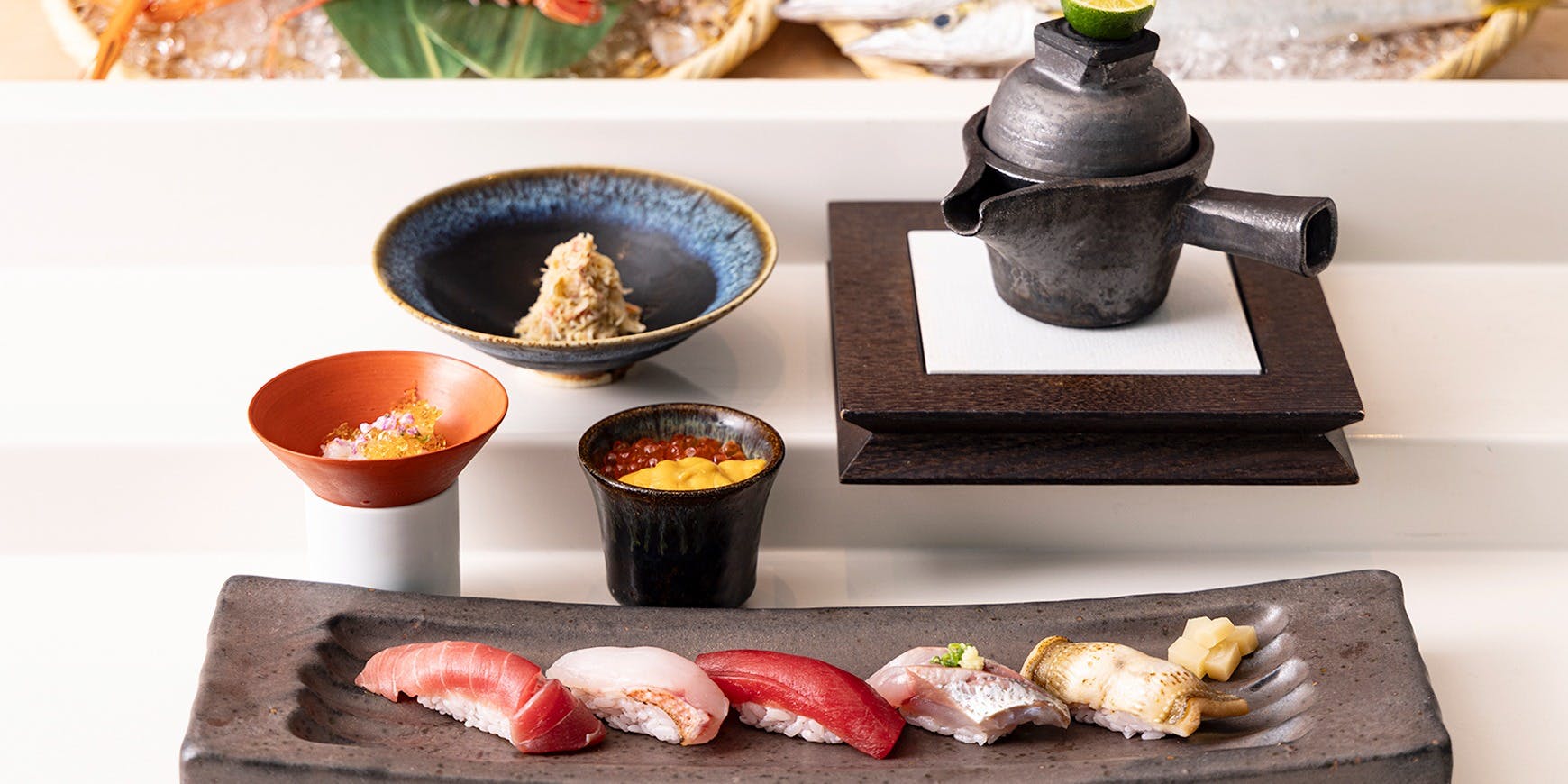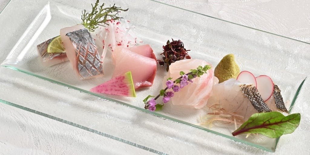 旬を活かしたシーフードをフレンチをベースにしながらもカテゴリーの枠に捉われず様々なディティールを融合し、現代的タッチで四季折々表現。