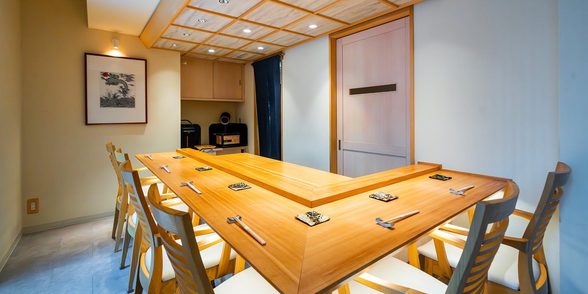 日本古来を感じられる空間で伝統的な技を重んじつつ、革新的なスタイルを取り入れた鮨と創作料理