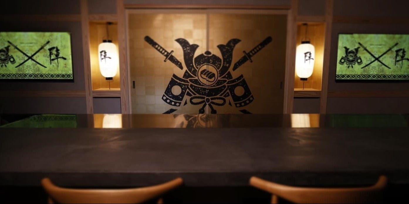 まるで戦国時代の雰囲気の店内で寿司の握り体験ができ、アナタの2時間を最高の思い出に。ここでしか味わえないエンターテインメントレストランです!