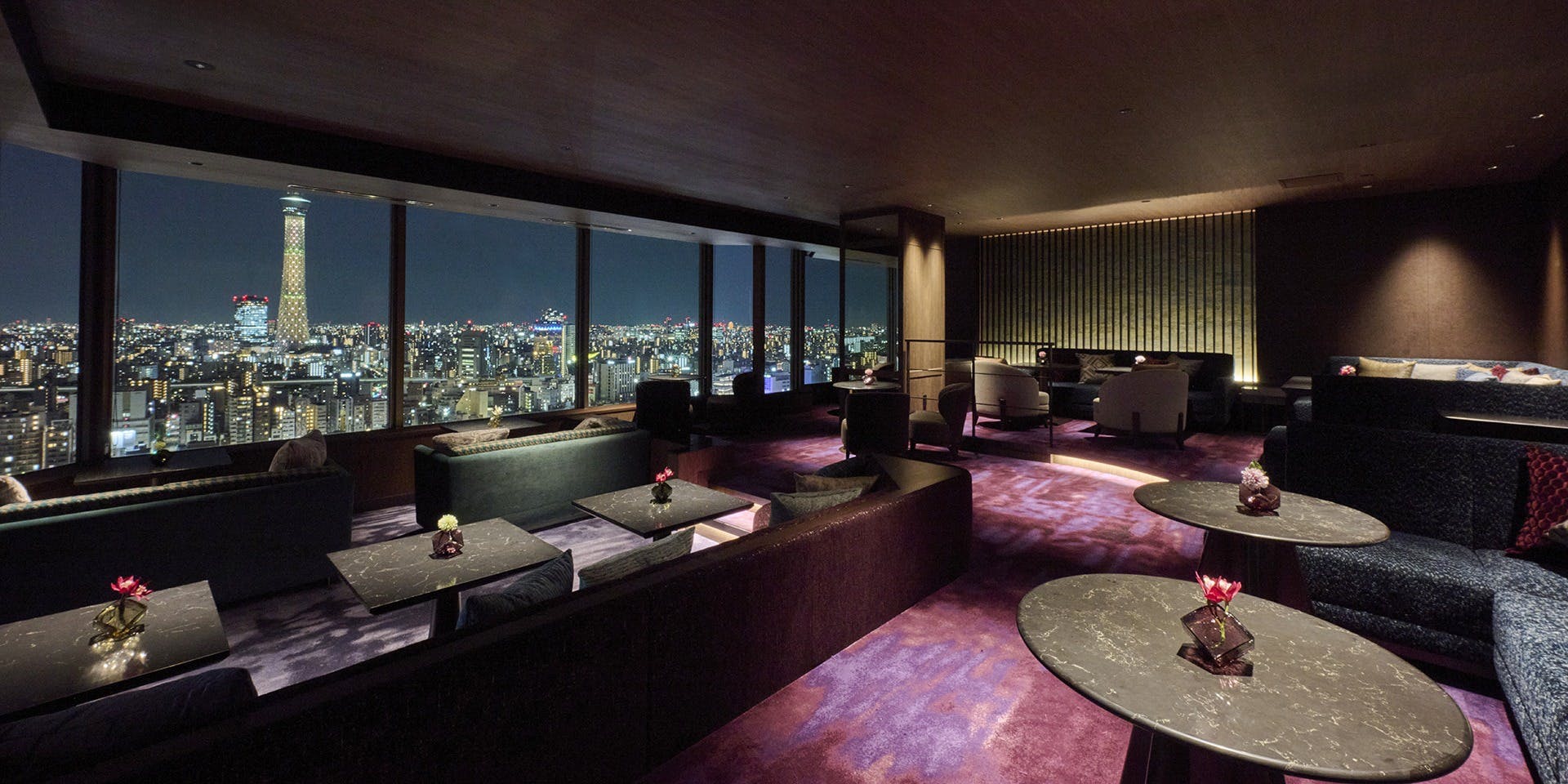 28階最上階から東京スカイツリー(R)や浅草寺など新旧織り成す、すばらしい夜景を楽しみながら素敵なひとときを。