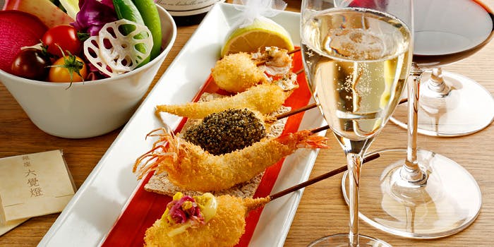 素材本来の味を味わえる創作串揚げ店。季節を揚げた串揚げと日本酒、ワインのマリアージュをお愉しみ下さい!