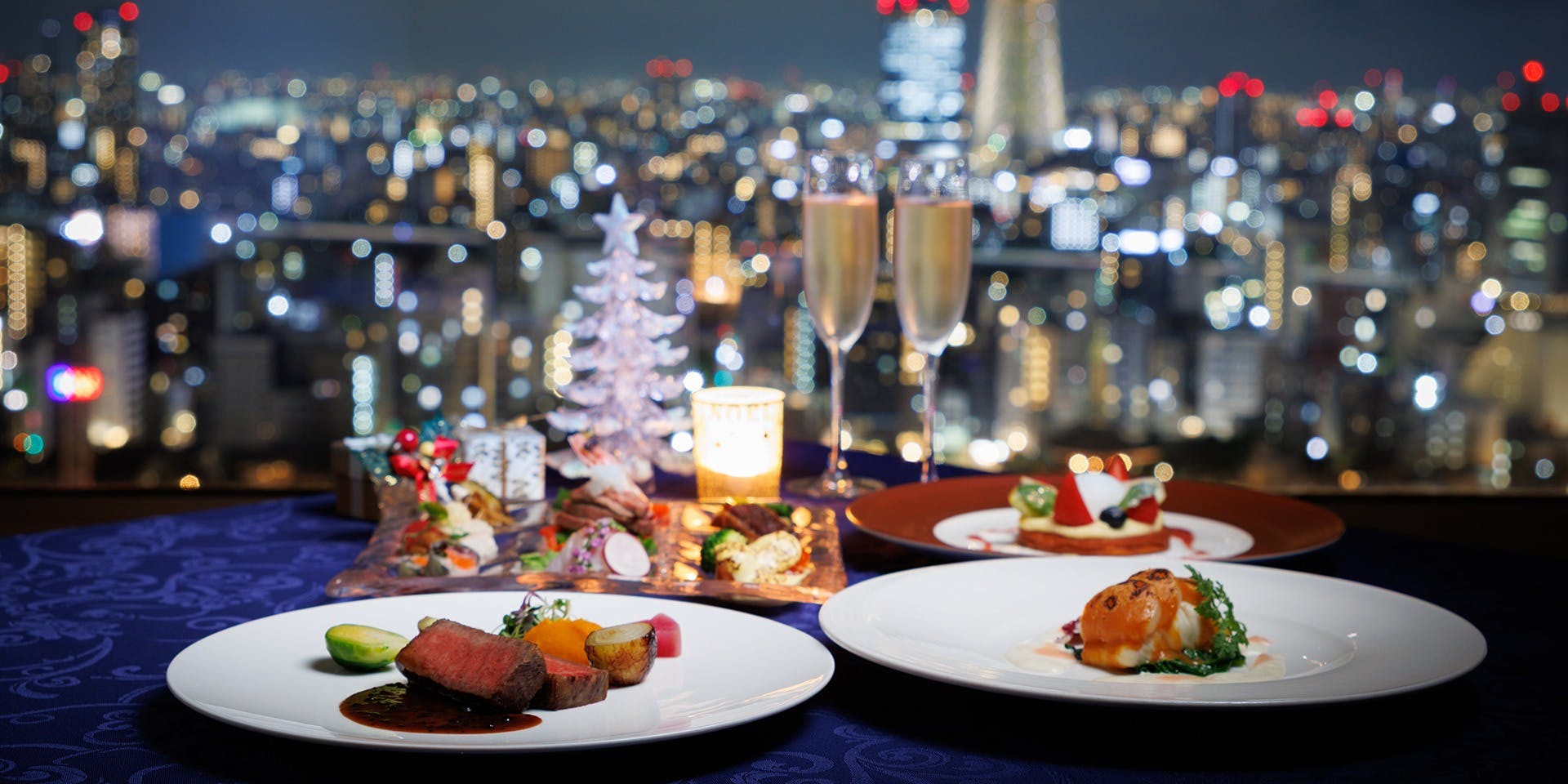 東京スカイツリー(R)を正面に臨める、27階に位置するメインダイニング。 中国料理とフランス料理を同時にお愉しみいただけるコースもございます。